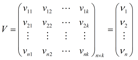 为了求出ω i j {{\omega _{ij}}}ωij,我们对每一个特征分量xi引入辅助向量V i = ( v i 1 , v i 2 , ⋯ , v i k ) {V_i} = \left( {{v_{i1}},{v_{i2}}, \cdots ,{v_{ik}}} \right)Vi=(vi1,vi2,⋯,vik)。然后利用v i v j T {v_i}v_j^TvivjT对ω i j {{\omega _{ij}}}ωij进行求解。