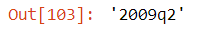 Returns the year and quarter of the recession bottom time as a string value in a format such as 2005q3