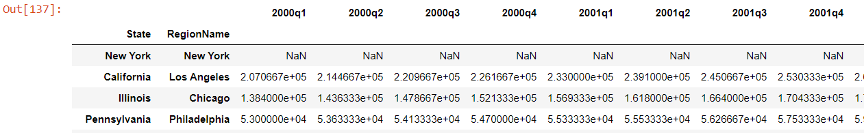 housing=housing.replace(housing.iloc[0][2:],housing.iloc[0][2:].apply(pd.to_datetime).dt.to_period('q'))