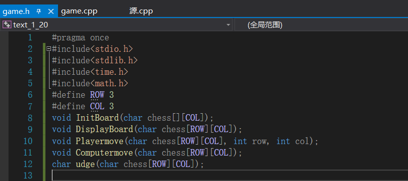 遵循高内聚低耦合我把函数写在game.h中,在game.c(cpp)中实现