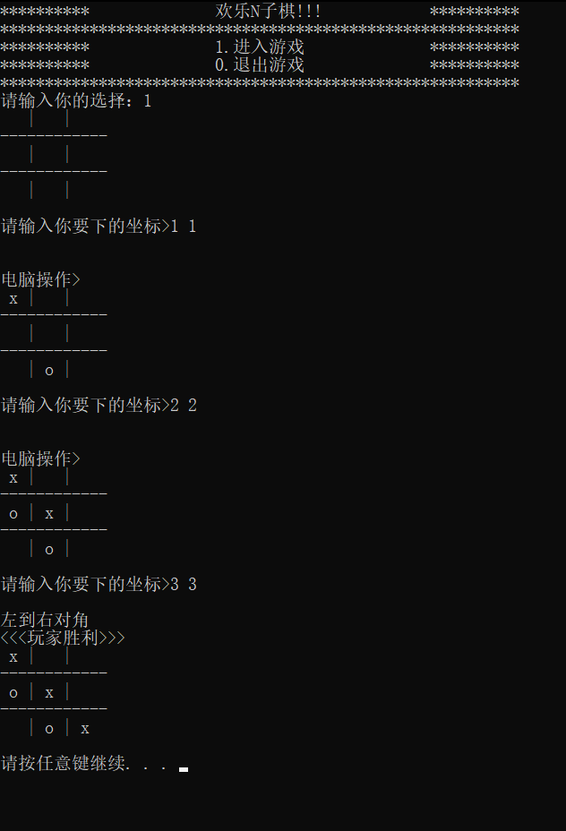 } while (ct);下面我们要做的就是剪线头的事情了,剪完运行;(这里把全局变量值改变理论上可以进行N子棋对弈,但是不太好玩)