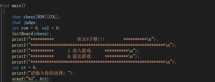 紧接着就是棋盘的框架展示了,game.h中写这个函数,同样在game.c中实现
