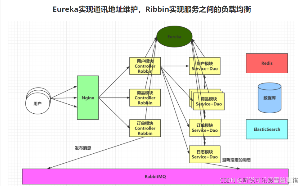 | Eureka实现通讯地址维护,Ribbin实现服务之间的负载均衡 |