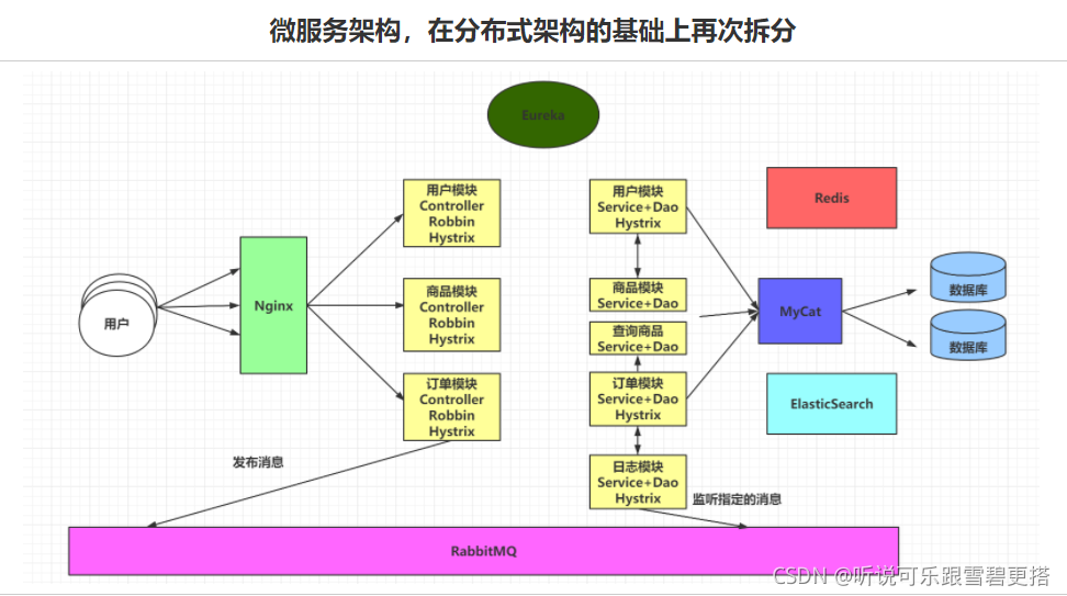 比如项目包含了三个模块,用户模块,商品模块,订单模块。如果商品模块压力过大,一般最直接有效的方式就是搭建集群。在单体架构的集群上水平去搭建,效果相对比较差。