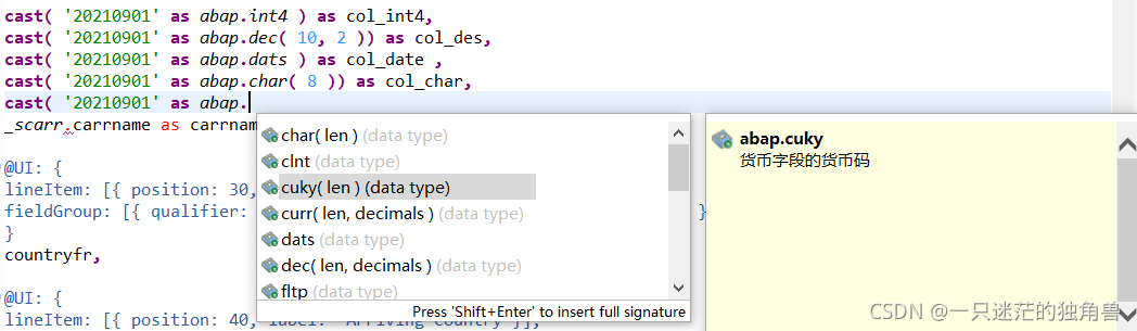 强制类型转换使用cast函数,支持ABAP的所有类型之间转换