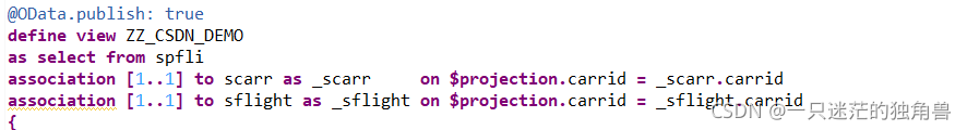 association [1..1] to sflight as _sflight on $projection.carrid = _sflight.carrid