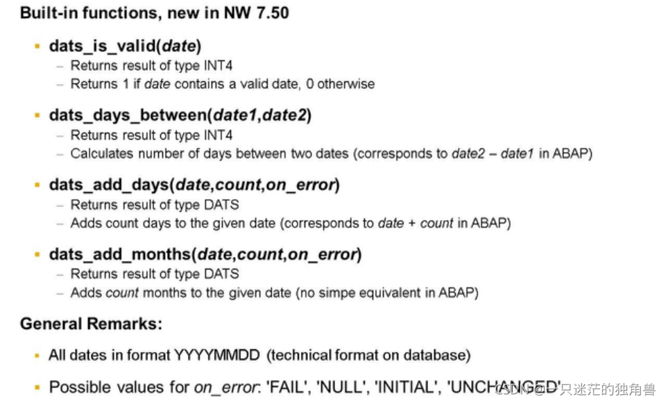 cast( 'MI' as abap.unit ) as distid ,日期函数