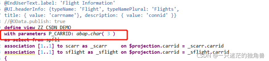 CDS VIEW使用parameters传递参数,带参数的CDS VIEW,不能直接发布成一个Odata服务,只能被消费
