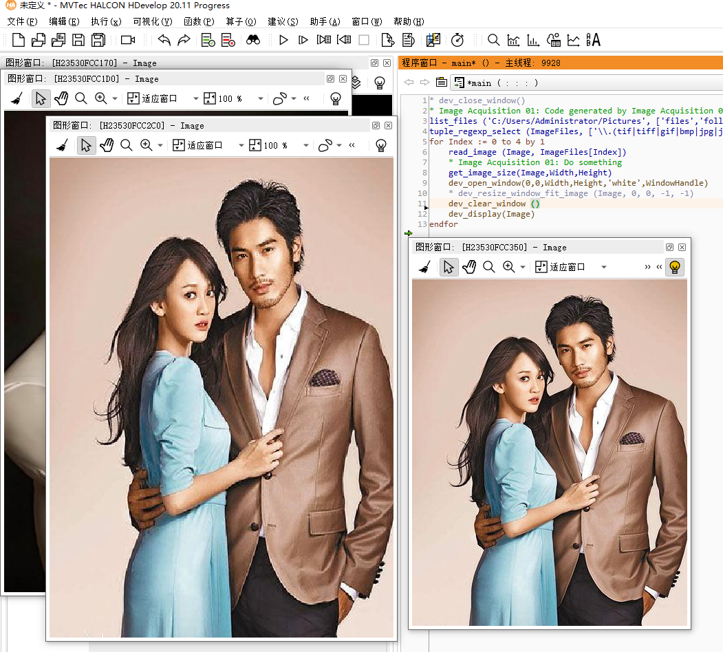 dev_close_window()最后会新建一个空白窗口,循环结束后关闭该空白窗口,这两种方法本质上类似于while与do..while的区别了,但是其二方法中没有明显的窗口闪烁!(因为利用了默认的左上角的图形窗口了吗?该图形窗口被设置为了“适应窗口,保持高宽比例”)