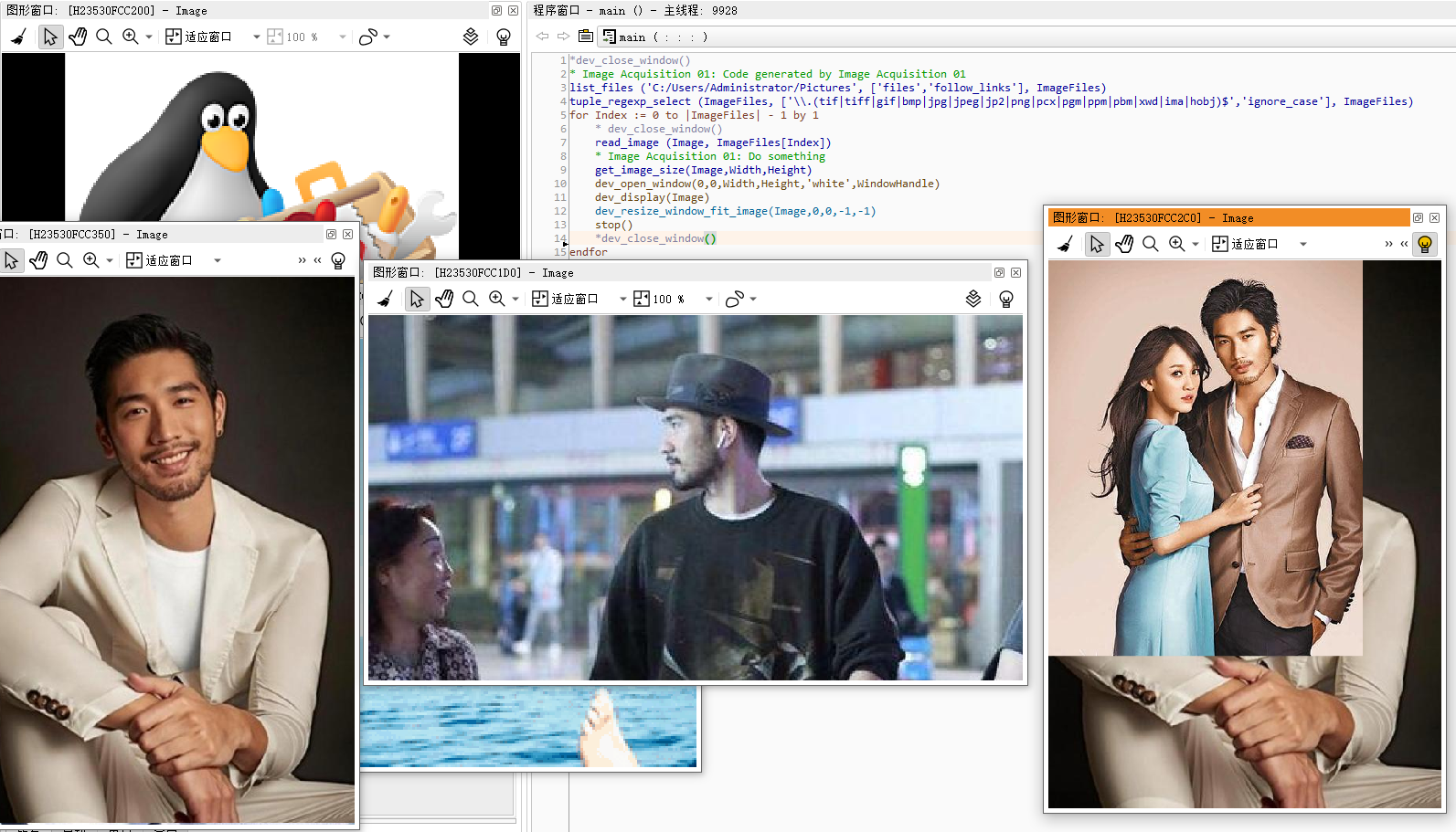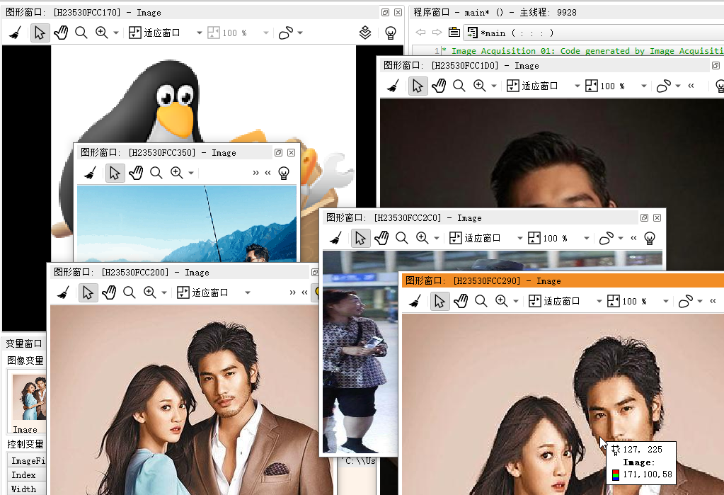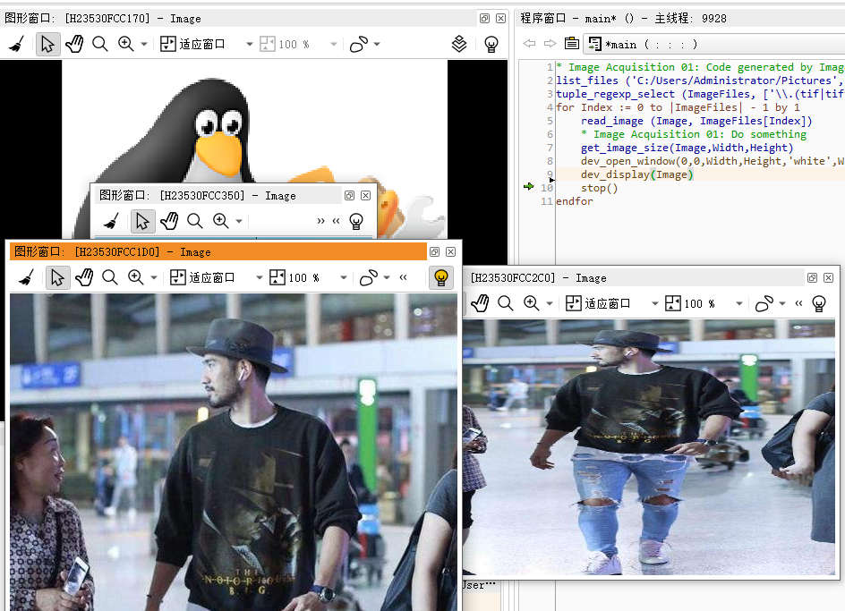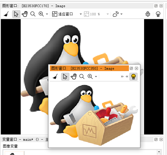 第一幅那个企鹅被固定在了左上角图像窗口中,因为是第一个窗口(默认位置就是这里),没有问题!