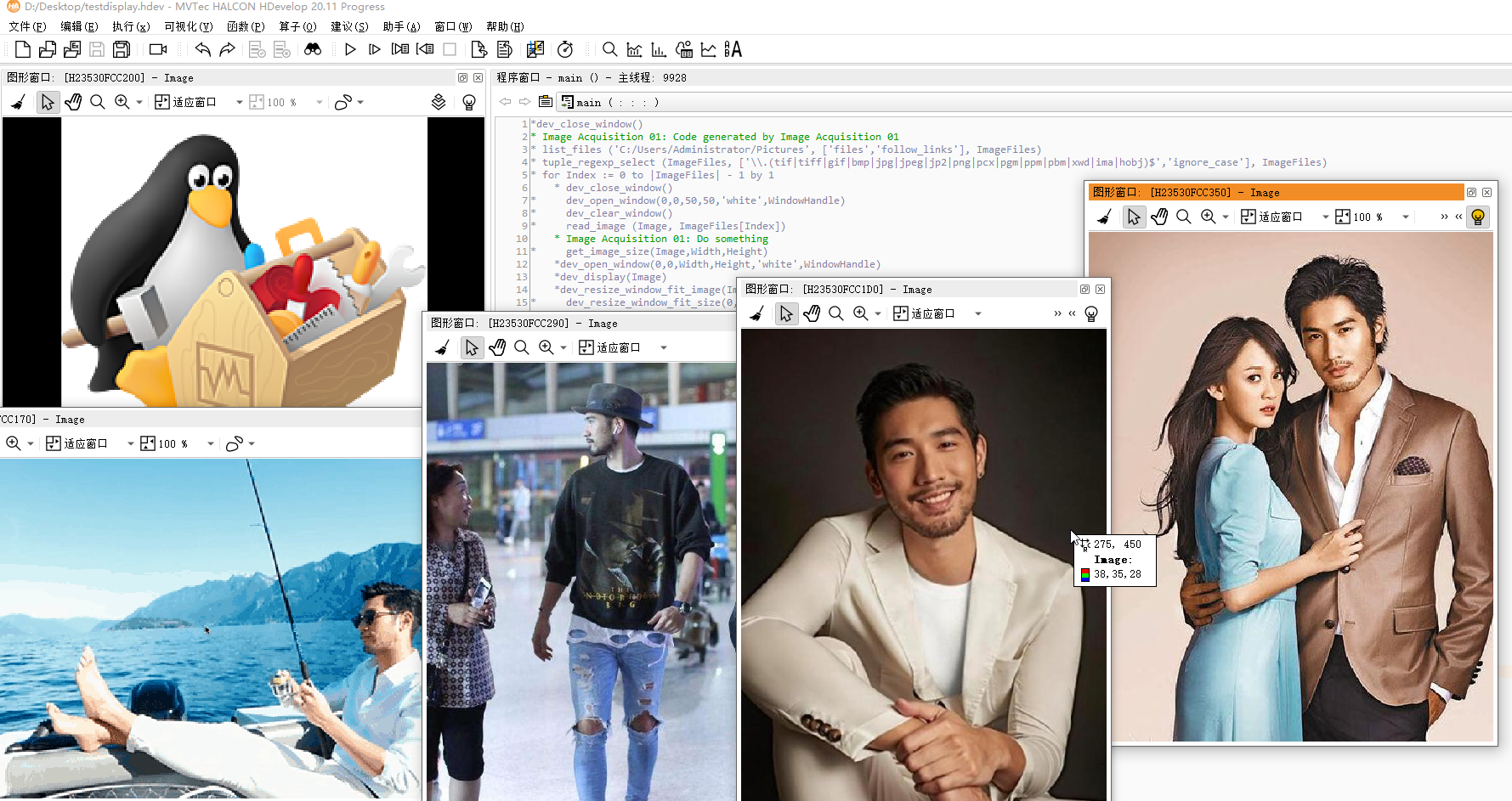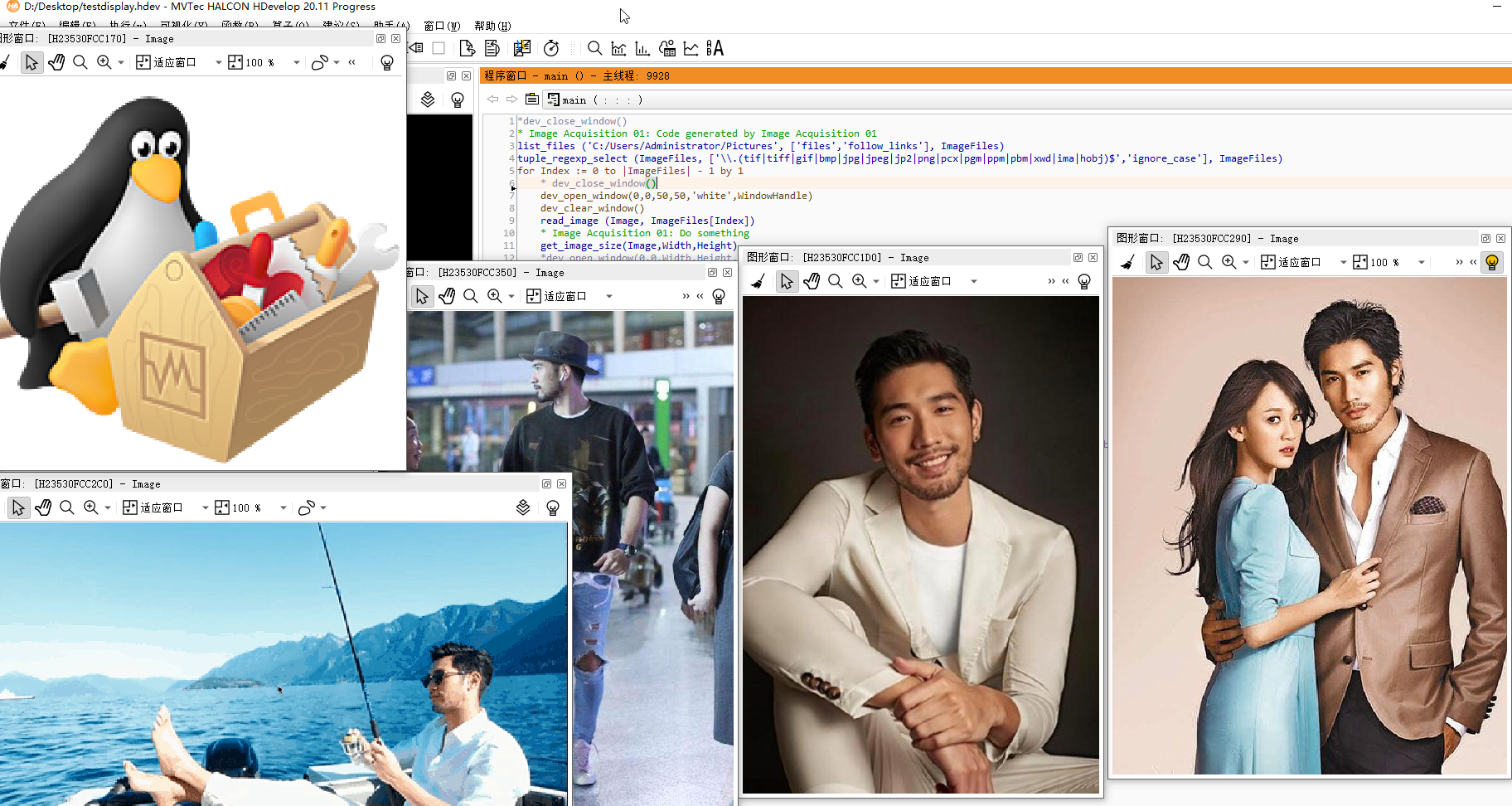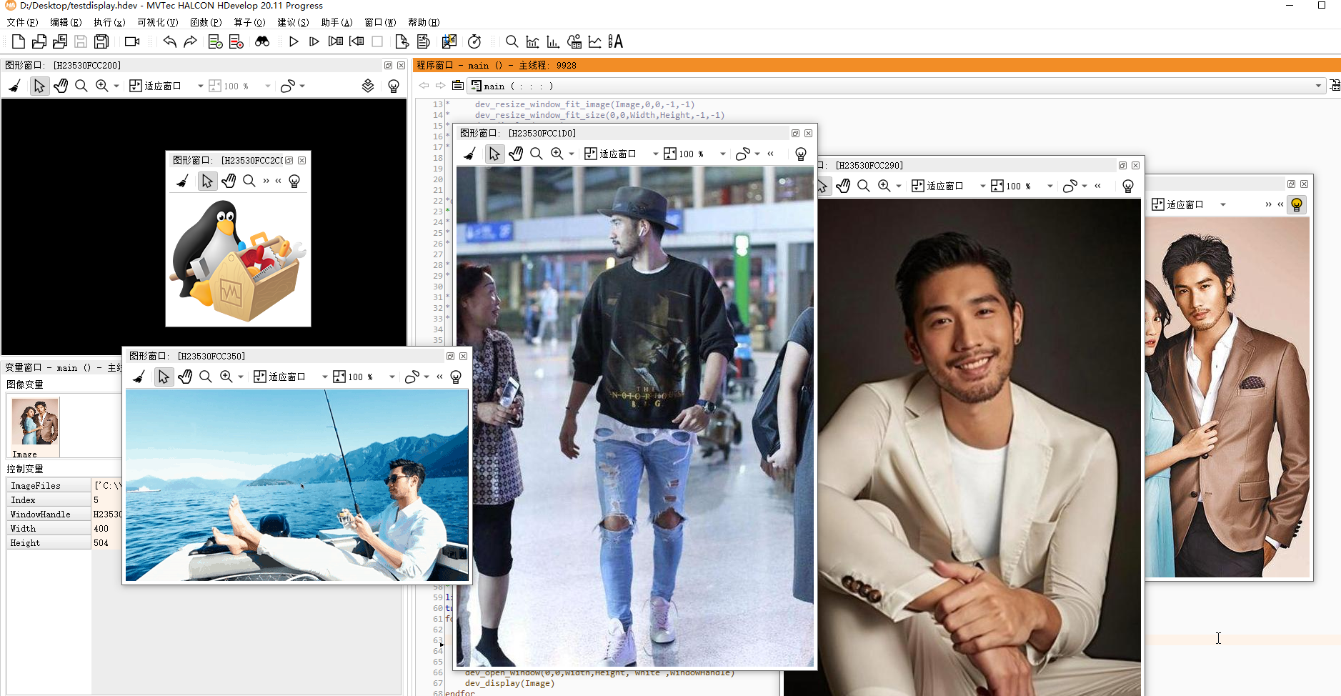 第一幅那个企鹅被固定在了左上角图像窗口中,因为是第一个窗口(默认位置就是这里),没有问题!