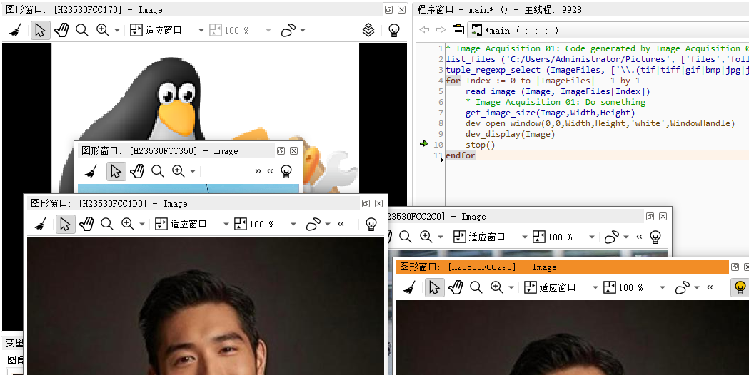 endfor与中文名肯定无关!总之现在的问题就是最后一张图像会被重复显示,而且显示的窗口大小还不一样,问题肯定出在循环语句上?【后面发现不是!而是出在新建窗口语句的位置上,应该先新建窗口并清空内容,再read图像,自适应窗口大小后显示图像】