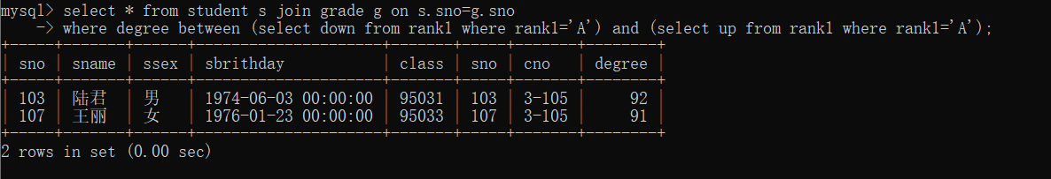 18、查询选修课成绩为A等的学生信息