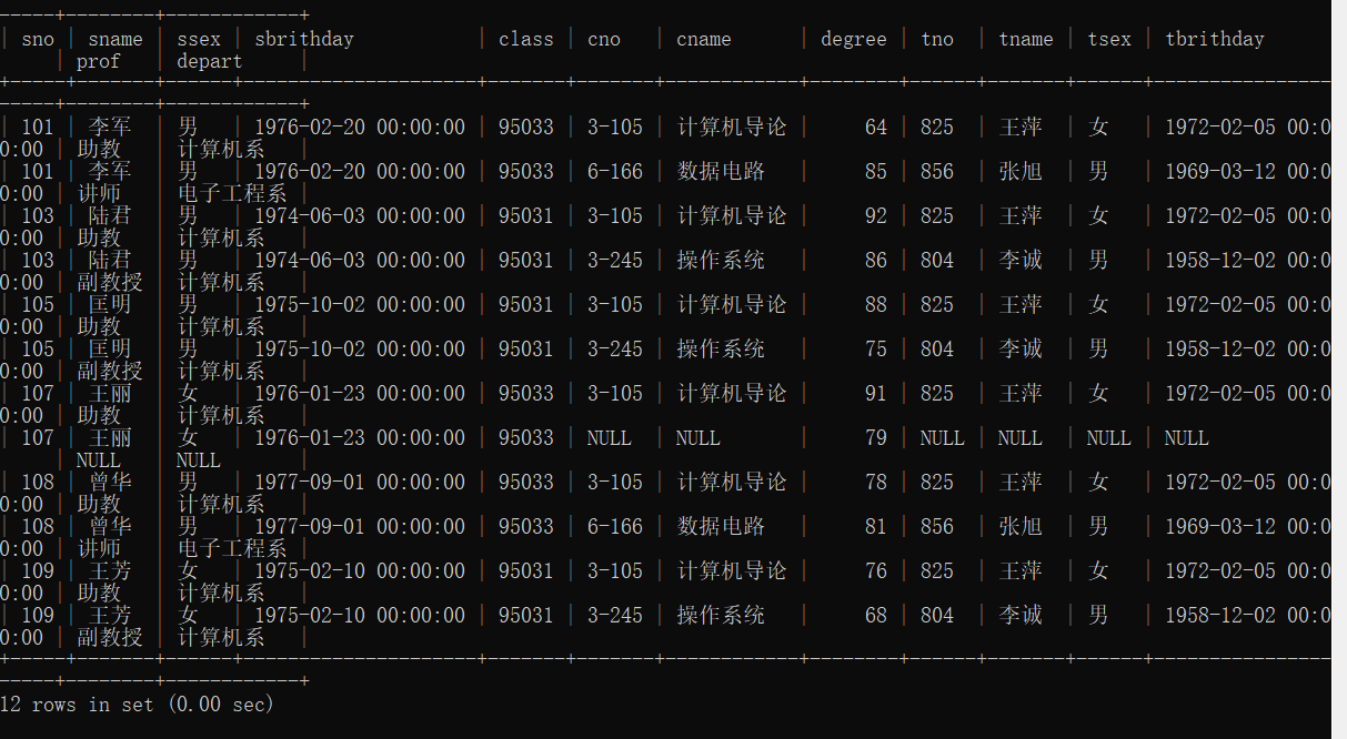 25、查询95033班和95031班全体学生的记录。