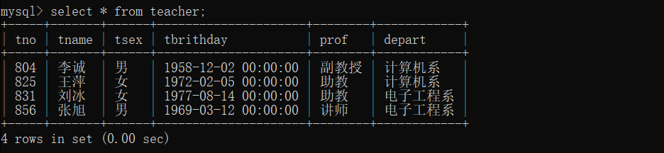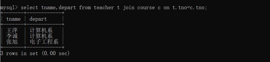 2、查询教师所有单位即不重复的depart