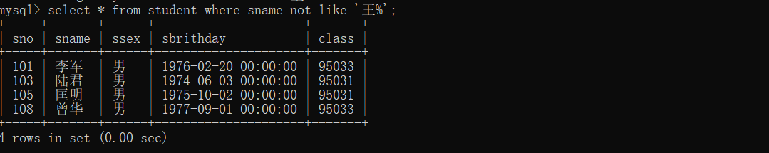 37、查询Student表中不姓“王”的同学记录。