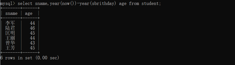 38、查询Student表中每个学生的姓名和年龄。