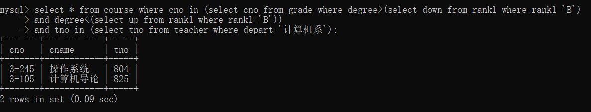 46、查询计算机系教师所教课程成绩为B等的课程信息