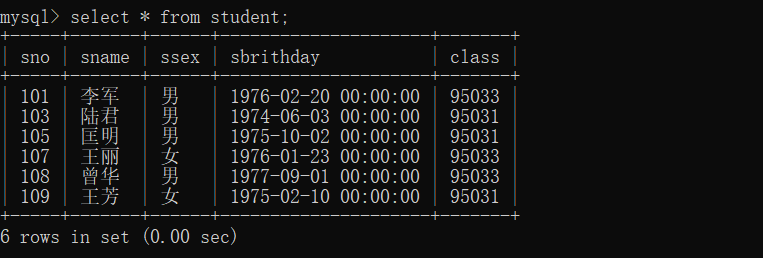 3、查询student表的所有记录
