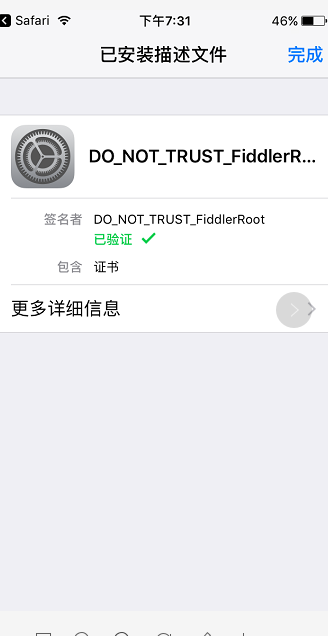 点击“FiddlerRoot certificate”进行证书安装,安装完成后,如下说明安装成功: