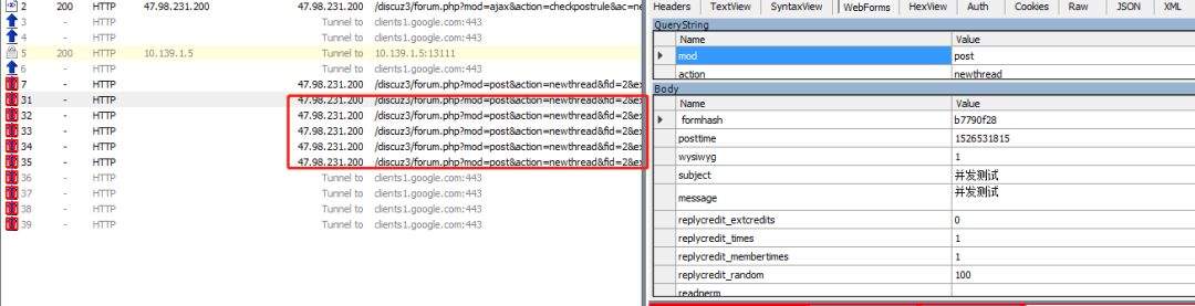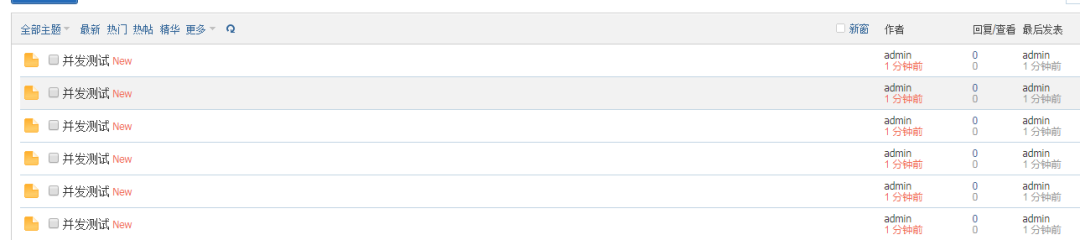 此时,点击工具栏“GO”,六个请求同时发到对应的服务端,即可形成6个并发请求,再看看发表帖子的情况如下:
