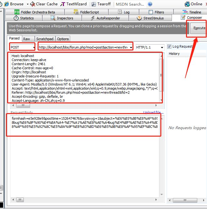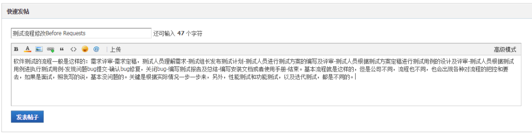 以论坛发布帖子为例,修改请求前数据内容,比如发布的内容如下: