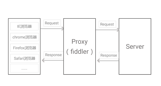 此时,fiddler就作为代理服务器,浏览器访问87testing.com的流程:浏览器给webserver发送一个Request,代理服务器fiddler接收到Request,fiddler将Request发送到webserver,webserver接收到Request后进行处理,Response到代理服务器fiddler,Fiddler将Response返回到浏览器,如图: