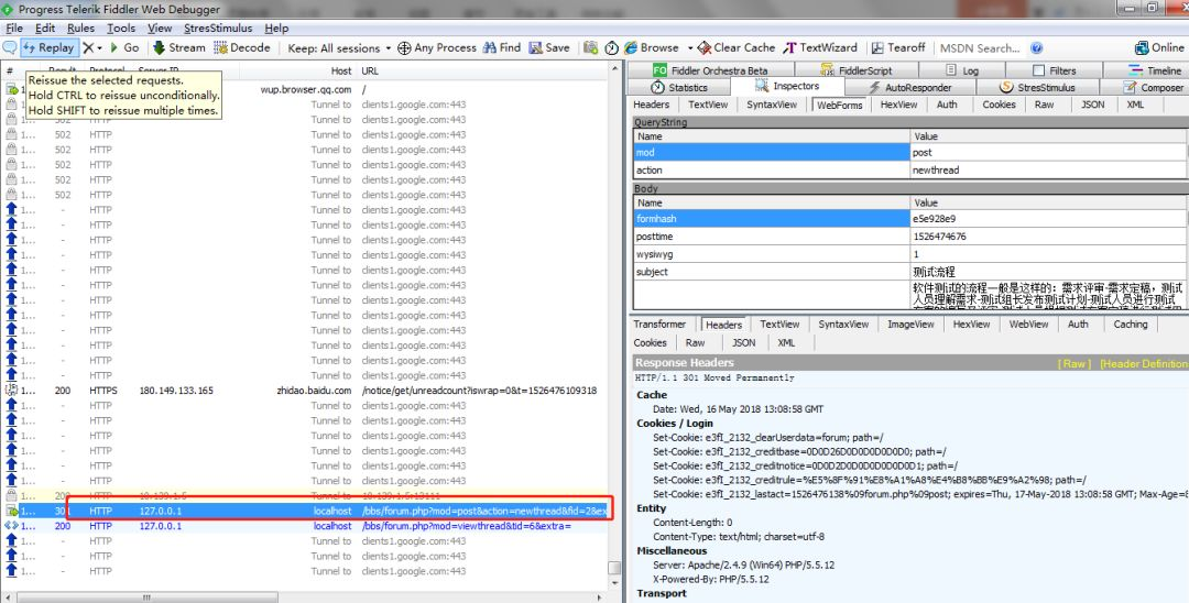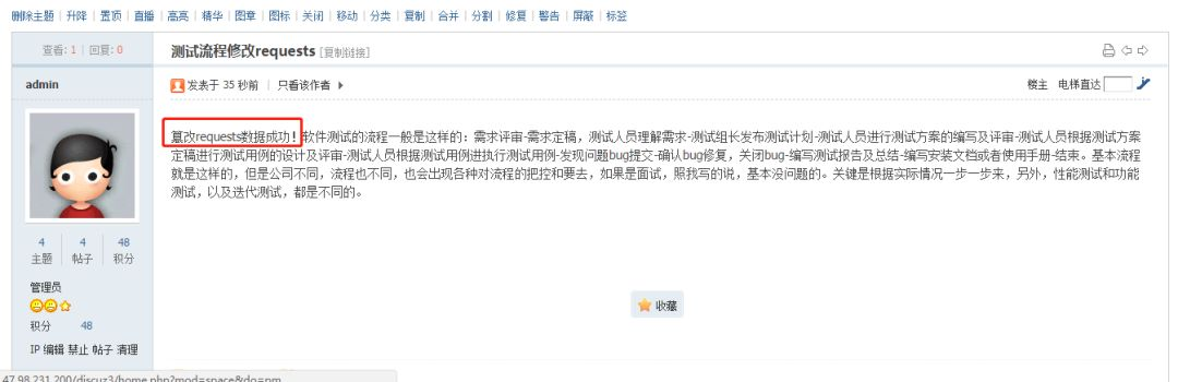 论坛中查看到刚刚发布的帖子内容如下,就被成功篡改了requests