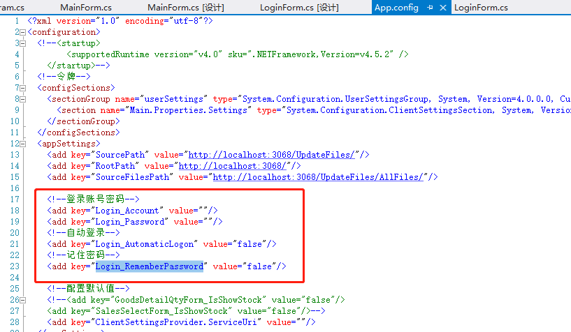 <add key="Login_RememberPassword" value="false"/>配置公共方法。配置在项目的until里面