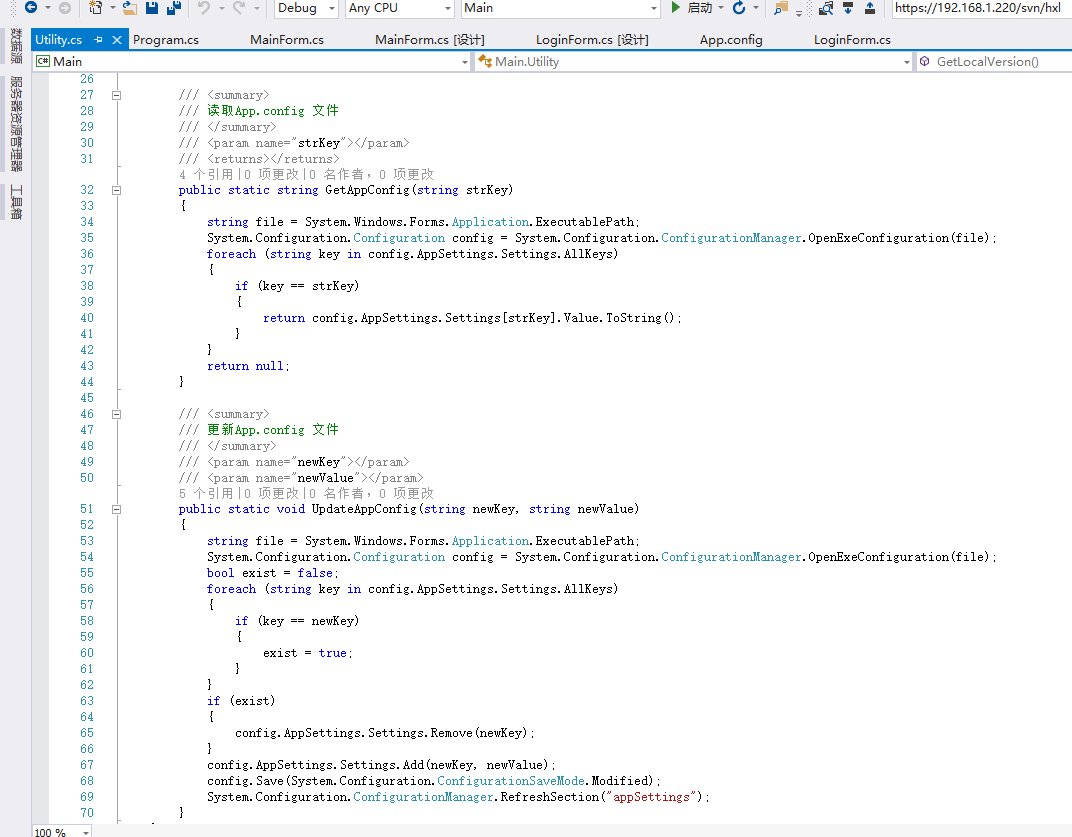 /// 读取App.config 文件