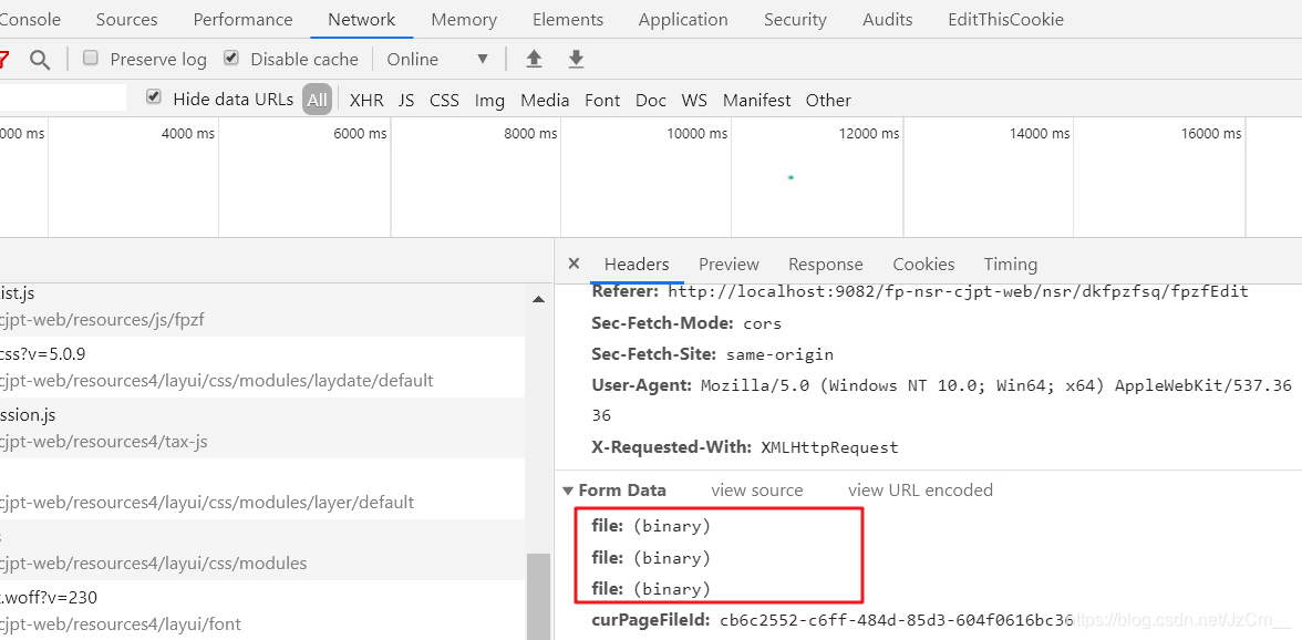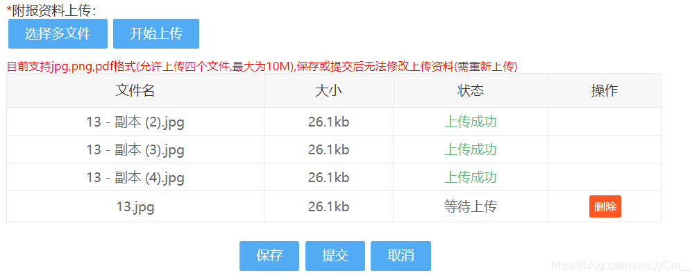 - 解决方法(多文件一次请求):看懂的关键部分,要想一次请求携带所有文件,先所有文件遍历放在同一个FormData中,最后最后在发送一次Ajax请求。当然这样虽然可以做到一次上传所有文件,但是对应的上传成功或失败后修改每个文件的状态还没做好,所有还得添加几行代码,稍见下方代码