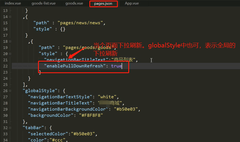 (2) enablePullRefresh下拉刷新 (先在pages.json中配置)