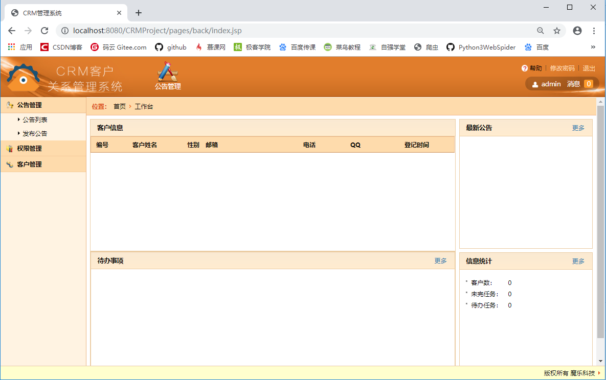 登录的用户,默认情况有三个不同角色,分别为:系统管理员,前台客服,信息管理员。
