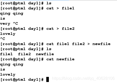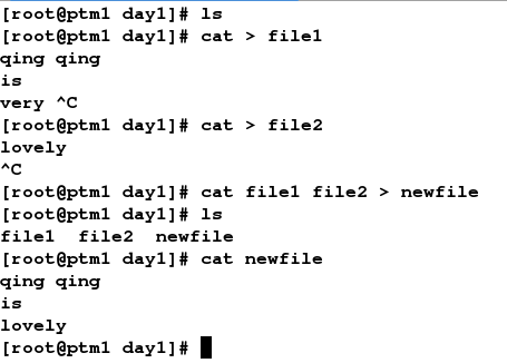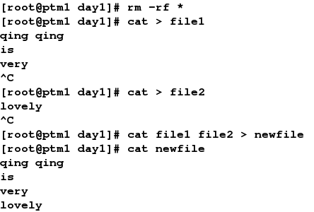 | cat file1 file2 > newfile | 将file2的内容追加到file1,生成新文件newfile |