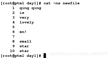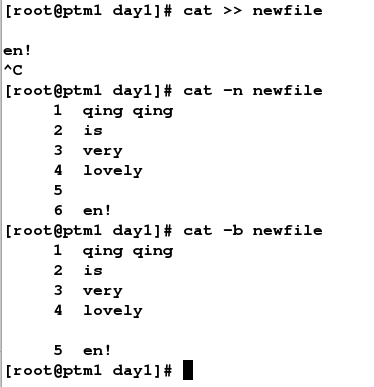 | -b | 对文件的行数从1开始编号,但对空行不进行编号 |