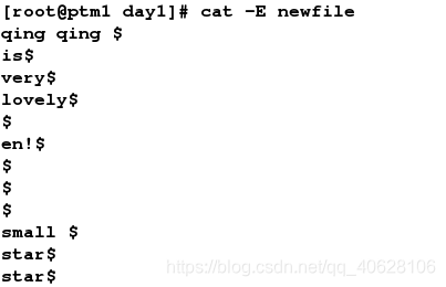 | -E | 在每行结束处显示$,$在文件中代表换行的意思 |