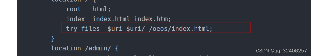 }主要问题就是try_files对应的配置,之前写的是绝对路径,但是前面root已经指定为html了,所以写绝对路径是访问不到的。