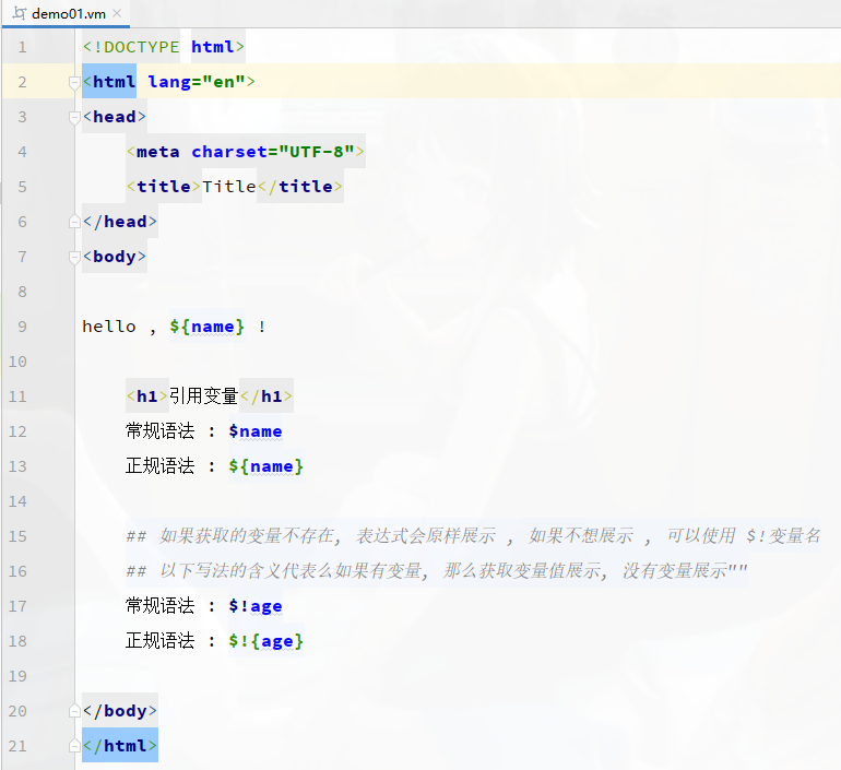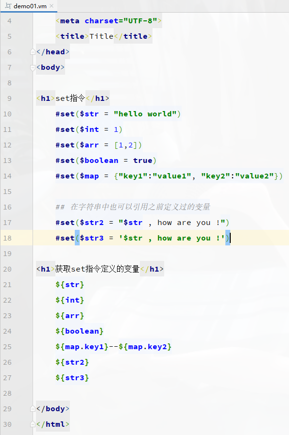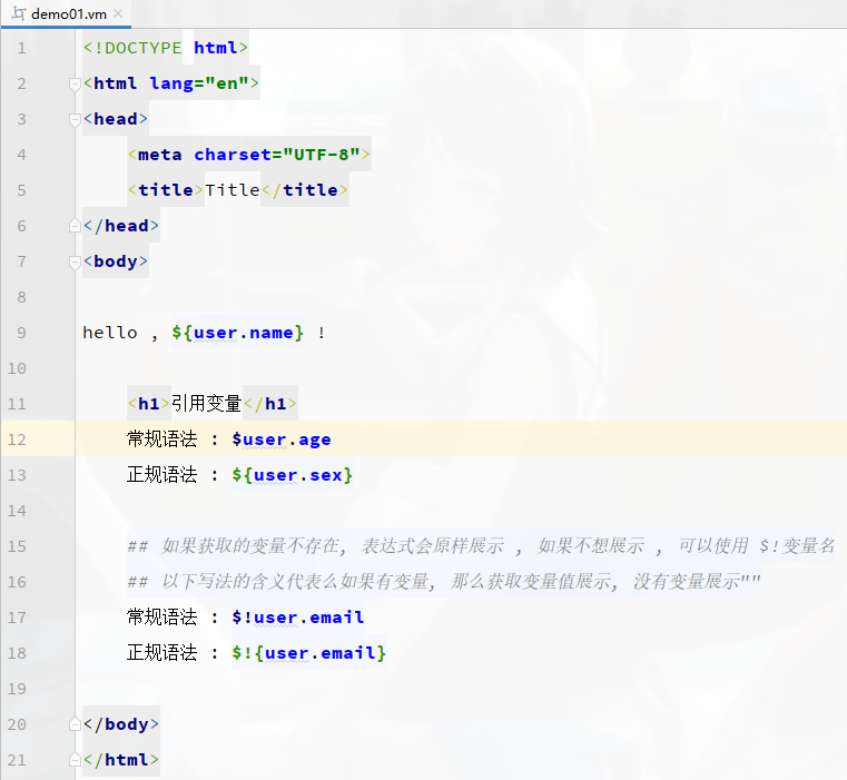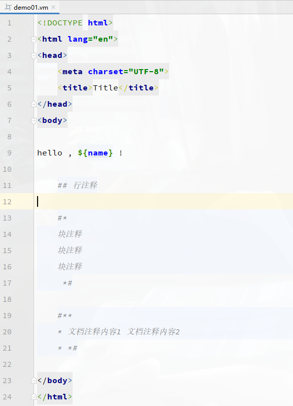 非解析内容就是不会被velocity 解析的内容,所写的内容都会原样输出出来。