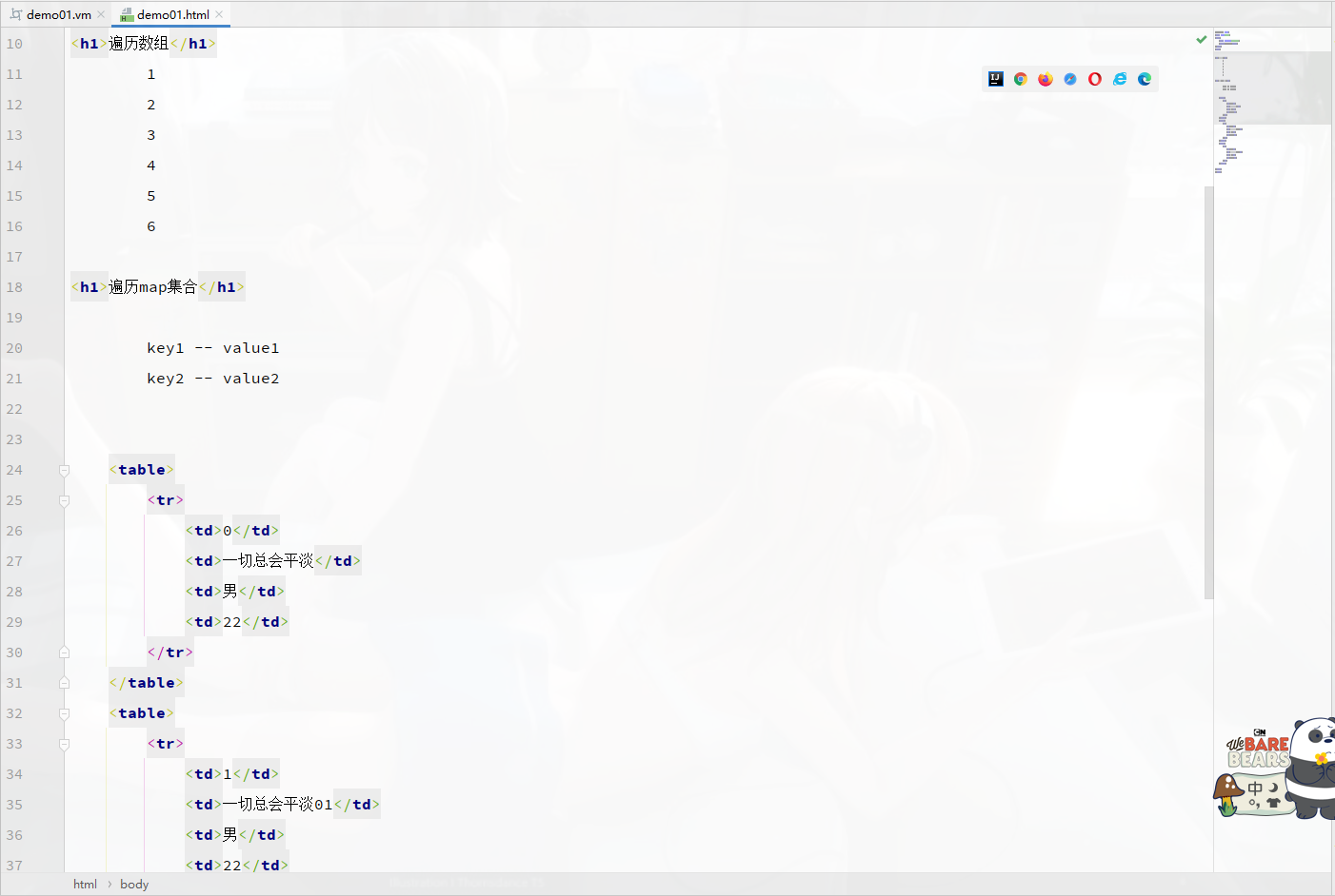 这里给大家简单演示如何使用Velocity定义html 模板,然后将动态数据填充到模板中,最后形成一个完整的html 页面。