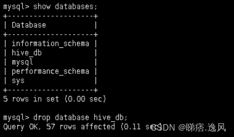 如果是使用的非默认为自带的 metastore_db 数据库,而是自己指定的 就像我这里指定的以MySQL作为元数据存储地址,需建立JDBC连接,且 hive_db 处为先前自己创建的 MySQL 数据库,存储元数据,那么你可能是因为已经进行了一次初始化,而多次初始化导致的,这时候你只需要进入你的mysql去删除你的hive_db然后再次进行初始化就成功了: