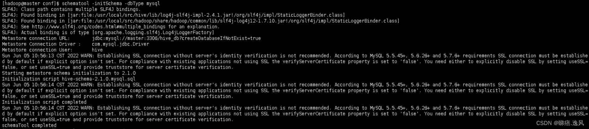 org.apache.hadoop.hive.metastore.HiveMetaException: Schema initialization FAILED! Metastore state would be inconsistent !!