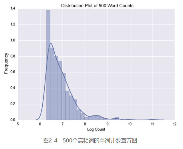我们用下面代码绘制500个高频词的单词计数直方图: