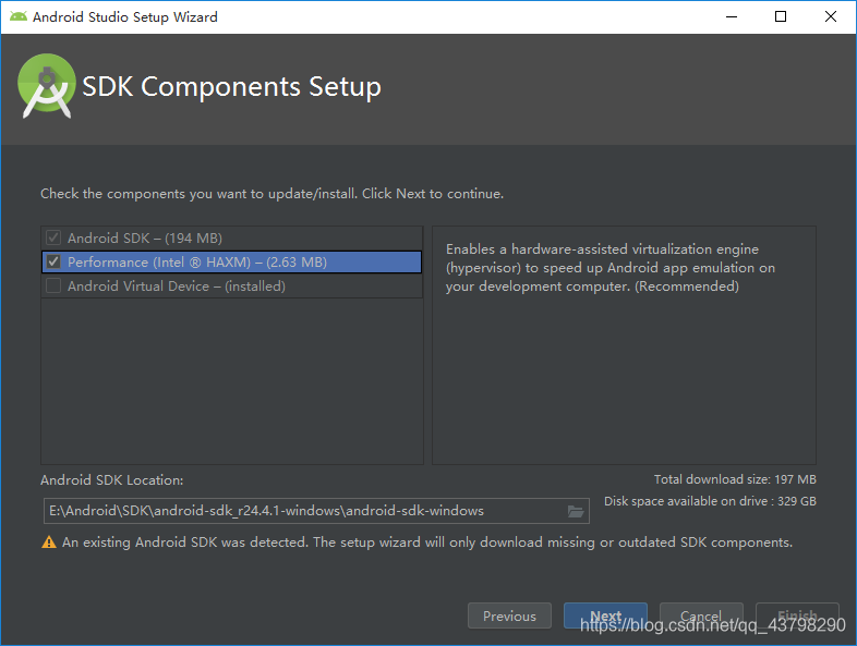 下载sdk的话Android studio会自动补充缺少的东西,也可不必下载sdk