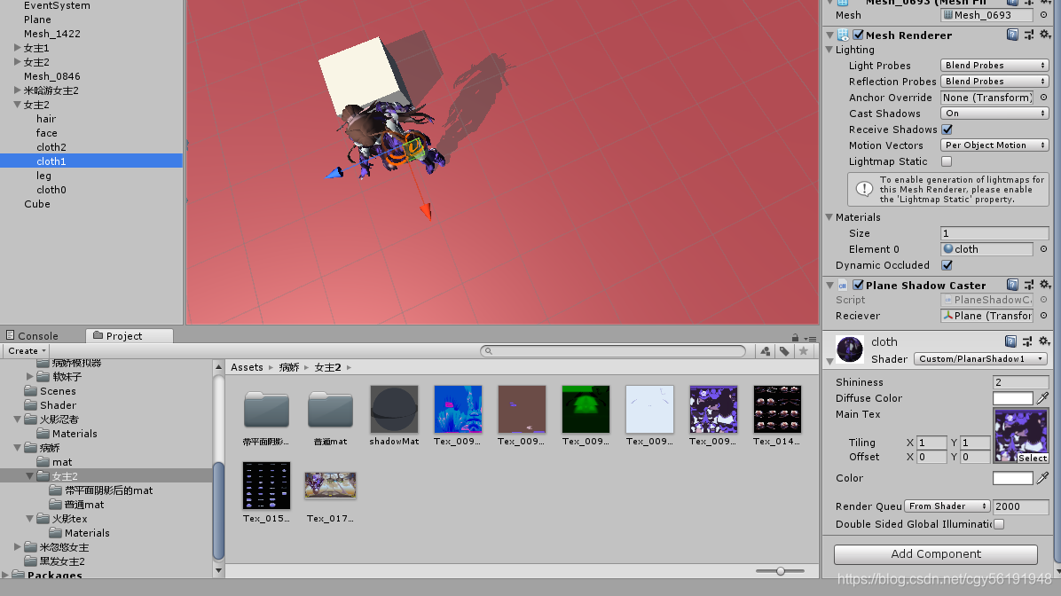 1.向shader传入阴影接收平面(通常是地面)的世界空间到模型空间的转换矩阵和模型空间到世界空间的转换矩阵。