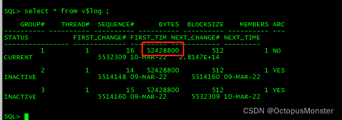 查看所有归档日志信息:select SEQUENCE#,NAME,BLOCKS,BLOCK_SIZE from v$archived_log where deleted='NO';