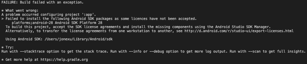 export ANDROID_HOME=/Users/你自己的账户目录/Library/Android/sdk