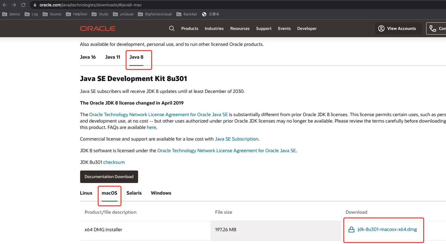 1、首先就是官网下载Java JDK8,拉到底Java8、Mac ,下载要你注册oracle,推荐共享账号