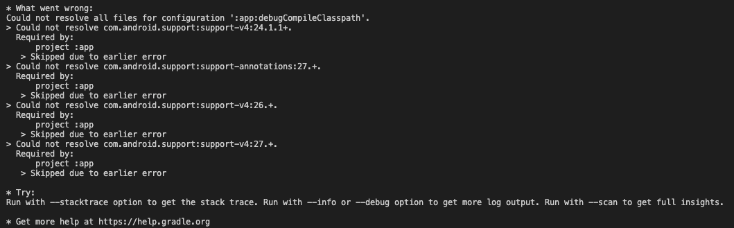 resolutionStrategy.force 'com.android.support:support-v4:27.1.1'