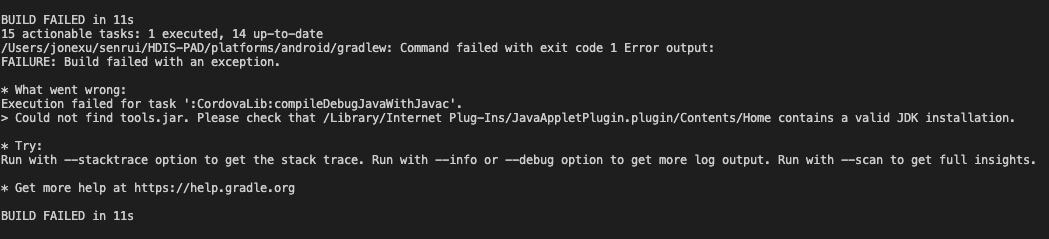 cordova.cmd build android --release exited with exit code 1.解决:主要是缺gradle环境,所以需要手动安装一下gradle。这个我是安装了homebrew,然后用命令安装的,有环境直接运行第二个安装命令