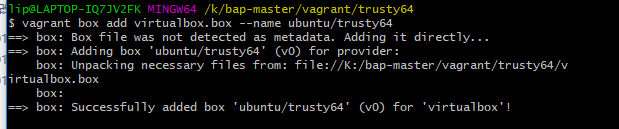 vagrant box add virtualbox.box --name ubuntun/trusty64